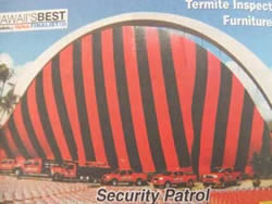 そんなに大変なの?と思っていましたが、つい最近こちらのローカルの人と結婚した友達が3000ドル以上かかったよと言うのを聞いてびっくり。駆除の仕方というのは幾通りか有るみたいですが面白いのはガス散布で、一軒家の場合お家全体にテントの様な物を掛け全部を覆って中でガスを散布するのです。もちろん家の中に食べ物等は置いておけません。全部処分するなり持ち出すなりして、ガスのかかって困る物もカバーし、2日程の間自分達はホテル暮らしです。ワイキキでは見かけませんが、ローカルの町の中に入ると時々赤と黄、青と緑というような派手なシマシマのテントが目に入る事があります。あれはサーカスがやって来た!訳ではなくてシロアリ退治をしているのです。