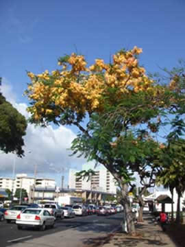 シャワーツリーの花が満開になりました。この樹は、よく街路樹として植えてあります。