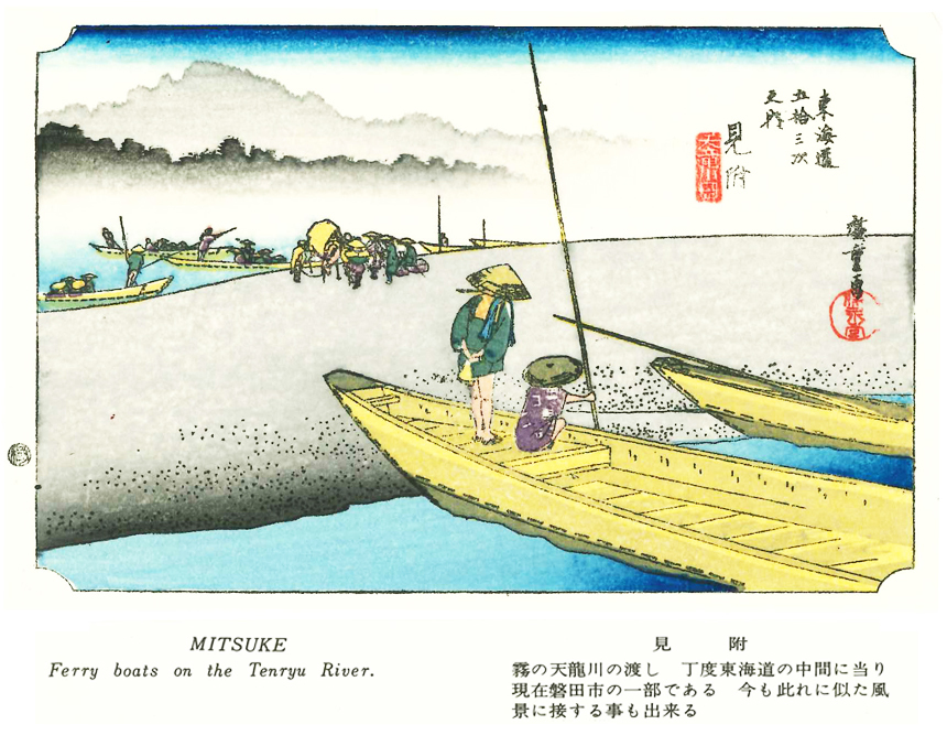 Mitsukejhuku is the 28th inn of the 53rd order of the Tōkaidō. It was located near present-day Iwata City, Shizuoka Prefecture. The name "Mizo" comes from the fact that it is a land bordering water.
