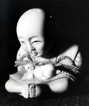 として江戸時代を代表する伝統工芸品として世界的にコレクターがいます。とりわけ、江戸時代の作品は「古根付け」として、国内はもとより、欧米で芸術的な価値が高く、世界的なオークションで数千万円の値がつく事も珍しくありません。王侯貴族や大富豪にコレクターが多い事でも知られています。 浮世絵ともども海外で人気の高い根付けですが、古根付の名作はことごとく海外に散逸してしまったのです。さらに、庶民たちの服装が和服から洋服に変わってしまった明治時代から実用性が薄れ、衰退してしまったのです。 しかし、伝統芸は根付師の間でいまにに引き継がれており、東京近辺の職人たちで構成している「根付彫刻会」に所属する約50人の根付師のなかには、川口市在住の斎藤美州さん(元国際根付彫刻会会長)のように、作品が大英博物館から買い上げられる例もあり、地味な存在ながら高円宮ご夫妻のようなコ レクターに支えられ、現代根付は健在なのです。 こんななかで、昔から象牙の密輸基地とされる香港で、江戸時代や現代の作家の作品をそっくり真似たコピー根付が数年前から出回り、欧米の観光客の人気を集めているのです。手先が器用な香港の中国人が精密な工具を使って密造しているもので、製造個数は日本の10倍にも達しているのです。 作りが雑で、やや大きめですが、価格が安い上に見栄えがいいことから観光客ばかりでなく、欧米のバイヤーが買いつけ、密かに骨董品店などに流しているのです。 ニセ根付の製造には、数百人の職人がかかわっているものと見られ、密輸した象牙を古代色に染める技術の研究にも余念が無いというから油断できません。現代作家の作品では、斎藤美州さんの「動物もの」、駒田柳之さんの「女性もの」まであり、作者の銘や裏側のひもを通す穴まで真似られており、これらの作品は繁華街にある根付専門店で売られているのです。 商標付きのバッグ類とは違うだけに、法的にも難しい面があるようですが、根付師たちの間からは「悪質なものは製造元をつきとめ、著作権の侵害で問題にしたい」との声があがってきました。 |