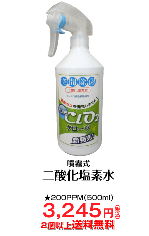 もちろん二酸化塩素ジェル、二酸化塩素水噴霧式各1個ずつの組合せでも送料無料