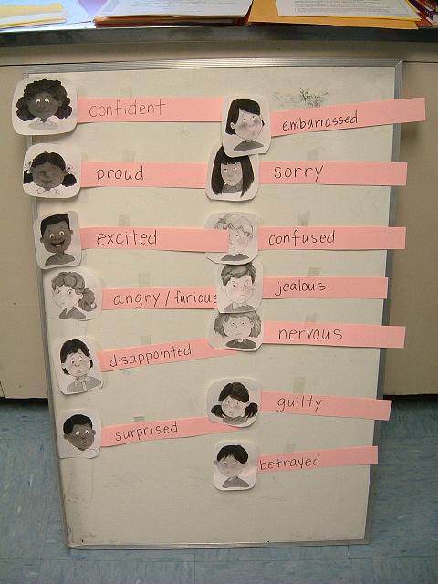 “感情表現レッスン”をしてみました。「あなたがこんな状況だったら、どんな気分になる?」というクイズっぽい質問に、生徒らも楽しそうに答えてくれました。