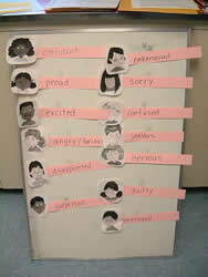 「お父さんがディズニーランドに連れて行ってくれると約束していたのに、急の仕事で行けなくなりました。さぁ、君はどう思う?」の問いに、「がっかり」と答える子もいれば、「イカる!」と言う強気クンや「裏切られた〜」という大袈裟さんもいました。